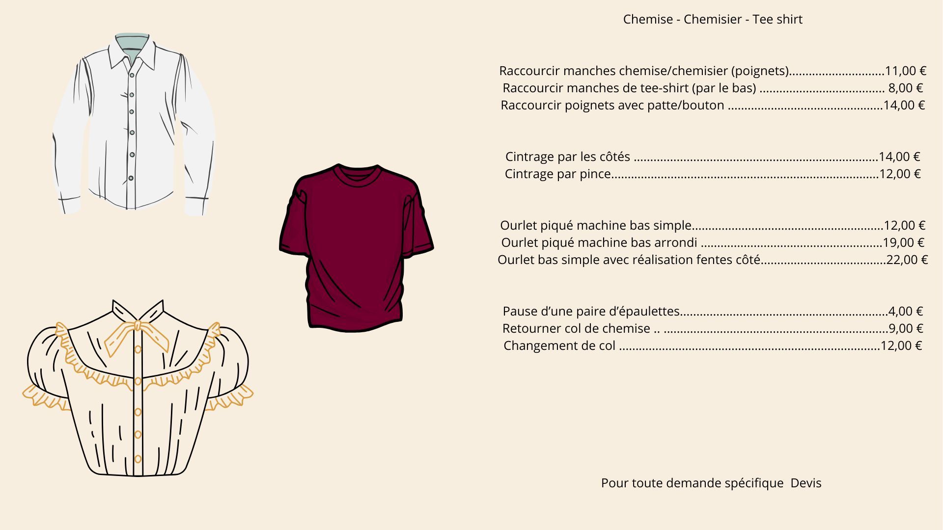 Que ce soit pour ajuster un vêtement ou ajouter une broderie délicate, je suis là pour transformer vos idées en une magnifique réalité !
